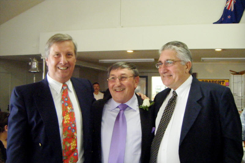 Volunteer' rule..? - Mark Binning [30 March 2009] Mike Morrison marries Lorna Sutton Mike married Lorna 28 March 2009 in New Plymouth. W3 wishes Mike and Lorna all best wishes for the future..! Someone needs to remind Mike to stand on a chair for photos. We will have to guess what the bride wore... from left: Mark Binning, Mike Morrison, Jim Mitchell [Binning] |