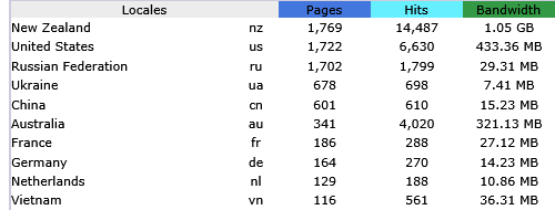 The second table illustrates the wide range of countries finding the website; in the past the US was consistently the largest source of visitors. New Zealand access is for the first time in a long while at the top of the charts, note Vietnam has appeared in 10th place possibly reflecting the number of veterans now visiting or living in the region: