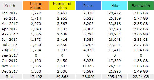 table is for December 2017 and illustrates the wide range of countries finding the website;