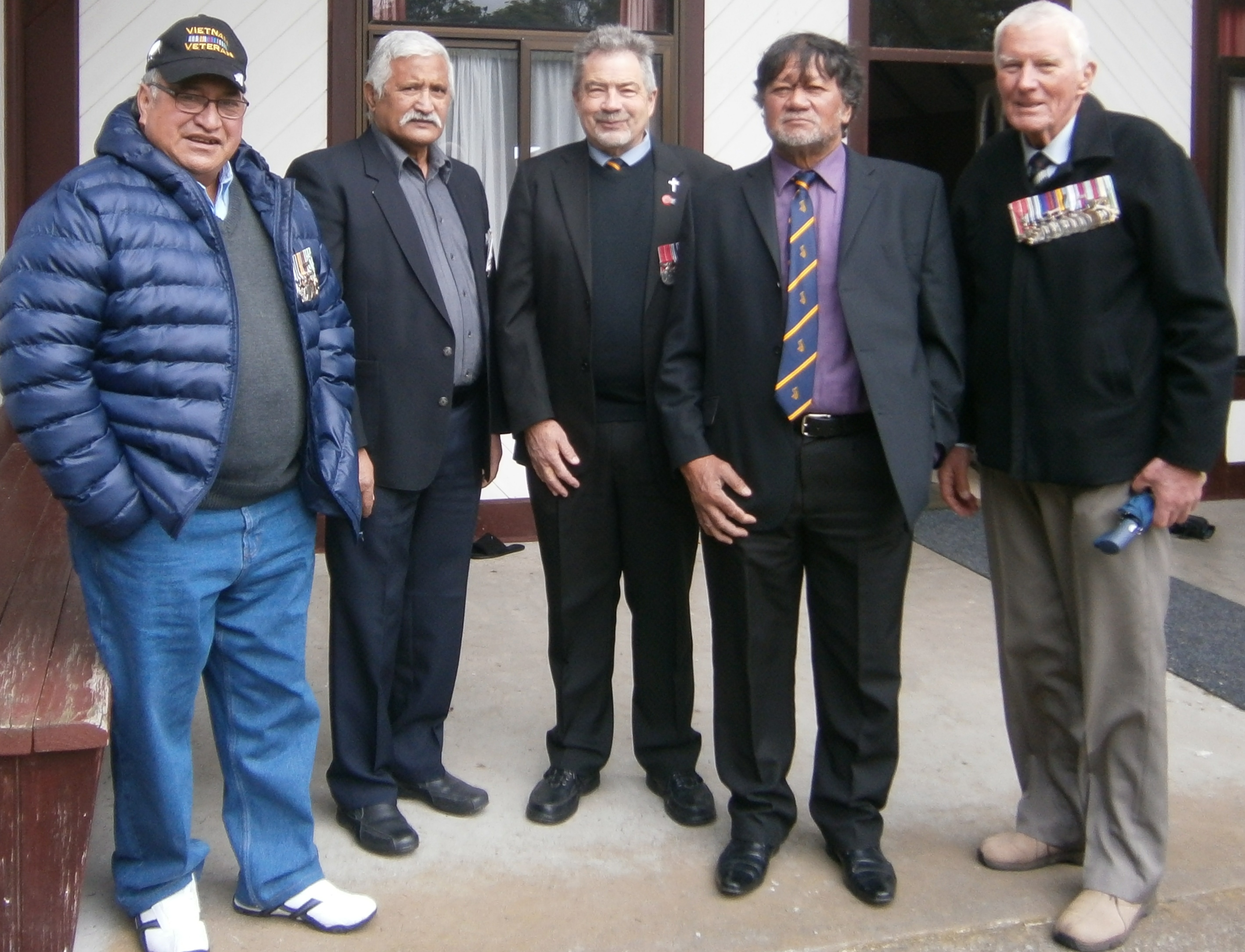 by some local ex Vietnam vets. Post tributes for the W3 website here. Evan Torrance - The Aorangi Marae was packed with whanau, friends and ex military folk for Philip's funeral. The eulogies painted a picture of Philip as a loving and caring brother, uncle and father figure to the many members of his whanau. He was also well known and popular around the Feilding district where he socialized enjoying a convivial drink and good food. The ex military folk comprised a number of ex Vietnam veterans and colleagues who had worked alongside him in Wellington and Christchurch post Vietnam. In the photo are the ex W3 Company veterans who were present - Jules Toheriri, Danny Campbell, Dave Gundersen, Ngatoko Kupe and Evan Torrance. |