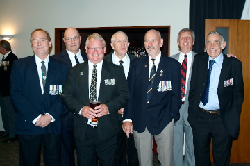 the mortar section is the largest section at any reunion from left Doug Lewis, Bruce Young, Ross Cherry, Stu Cameron, Dave Flintoft, Mark Binning, Dave Condon [Binning] |
