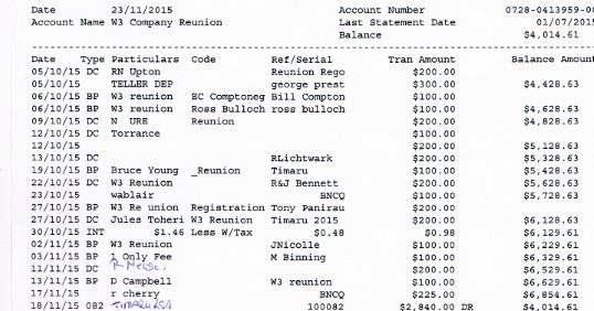 2015 - reunion committee The W3 RNZIR 45th anniversary reunion was held the weekend 13 - 15 November 2015 in Timaru, based at the Timaru RSA. The weekend programme was a familiar one - in outline: Friday night