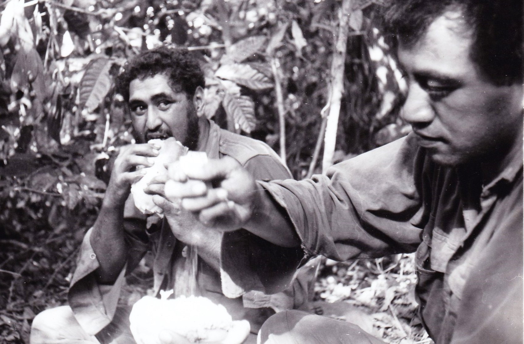 Paul Moana, Gordon Alex both 1Pl eating fresh : Bill Kahaki 2Pl, Graeme Briscoe 1Pl & Len Tallentire Coy HQ [pre-Vietnam] |