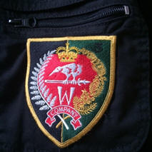embroidered pocket patches are 90x80 centimetres, on blue or black squares of blazer material measuring 150x150 centimetres - cost $22.00. The W3 pocket is also available with a black '3'. |